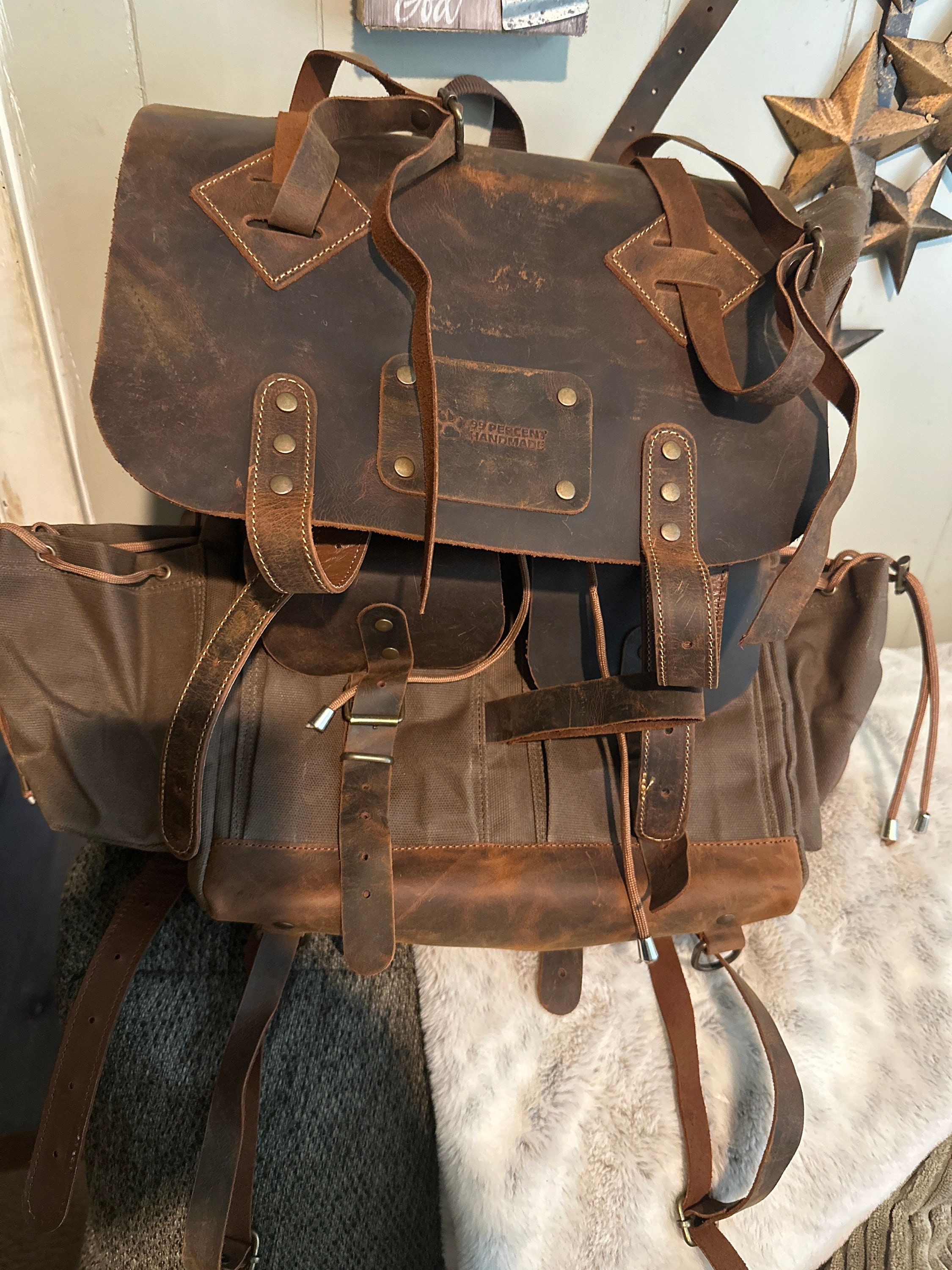 Tips: Only 2 Pcs Left Big Discount 799 to 599 | 45L | Handmade Leather and Waxed Canvas Backpack for Travel, Camping, Bushcraft | Personalization