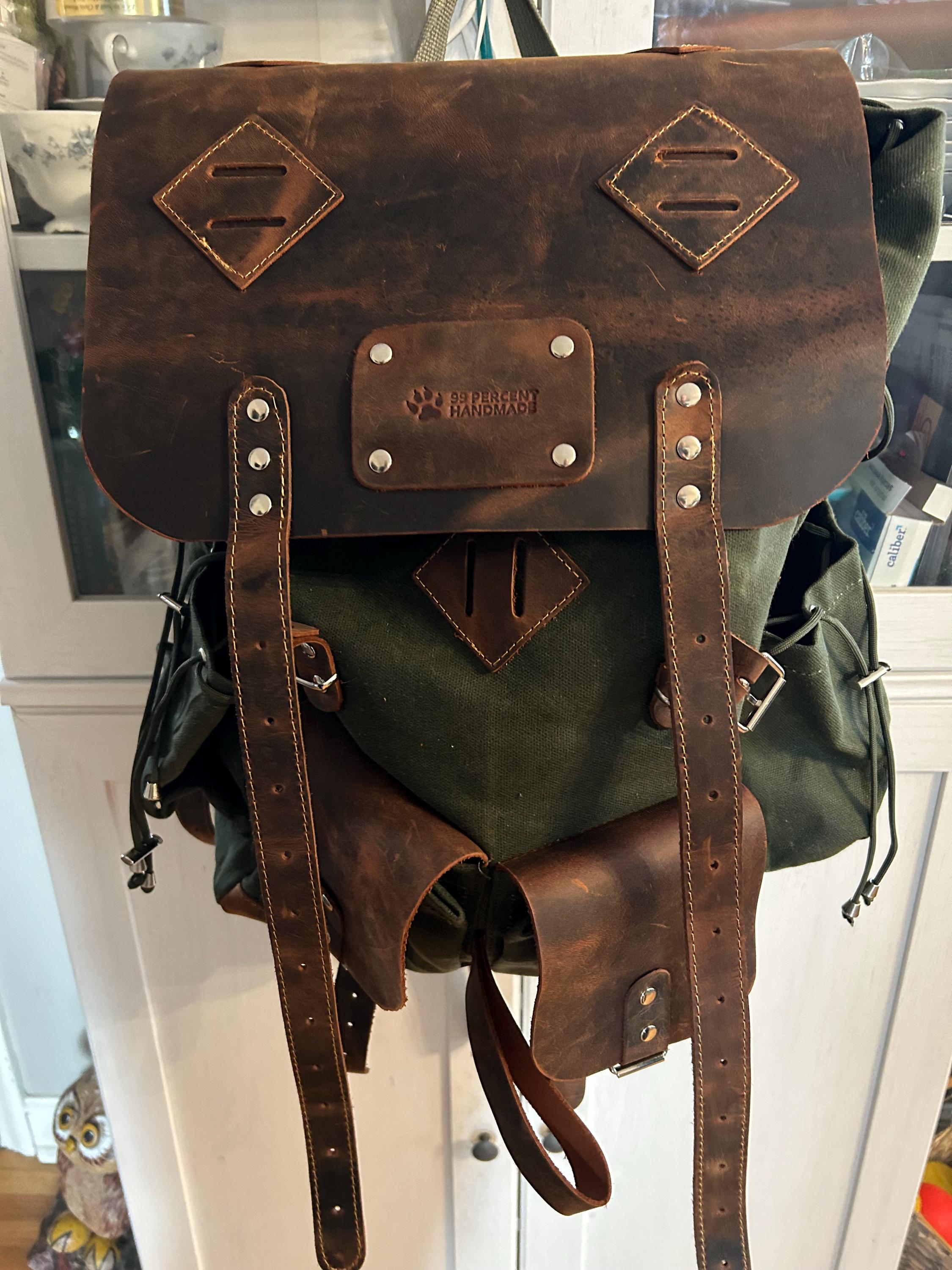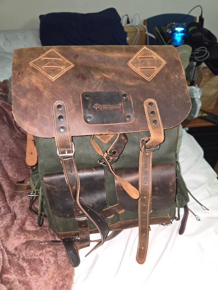 13)Bushcraft Handmade Wax Canvas Backpack | Leather Backpack | Travel | Camping | Fishing | Hunting | Bushcraft | 50Liters | Personalization