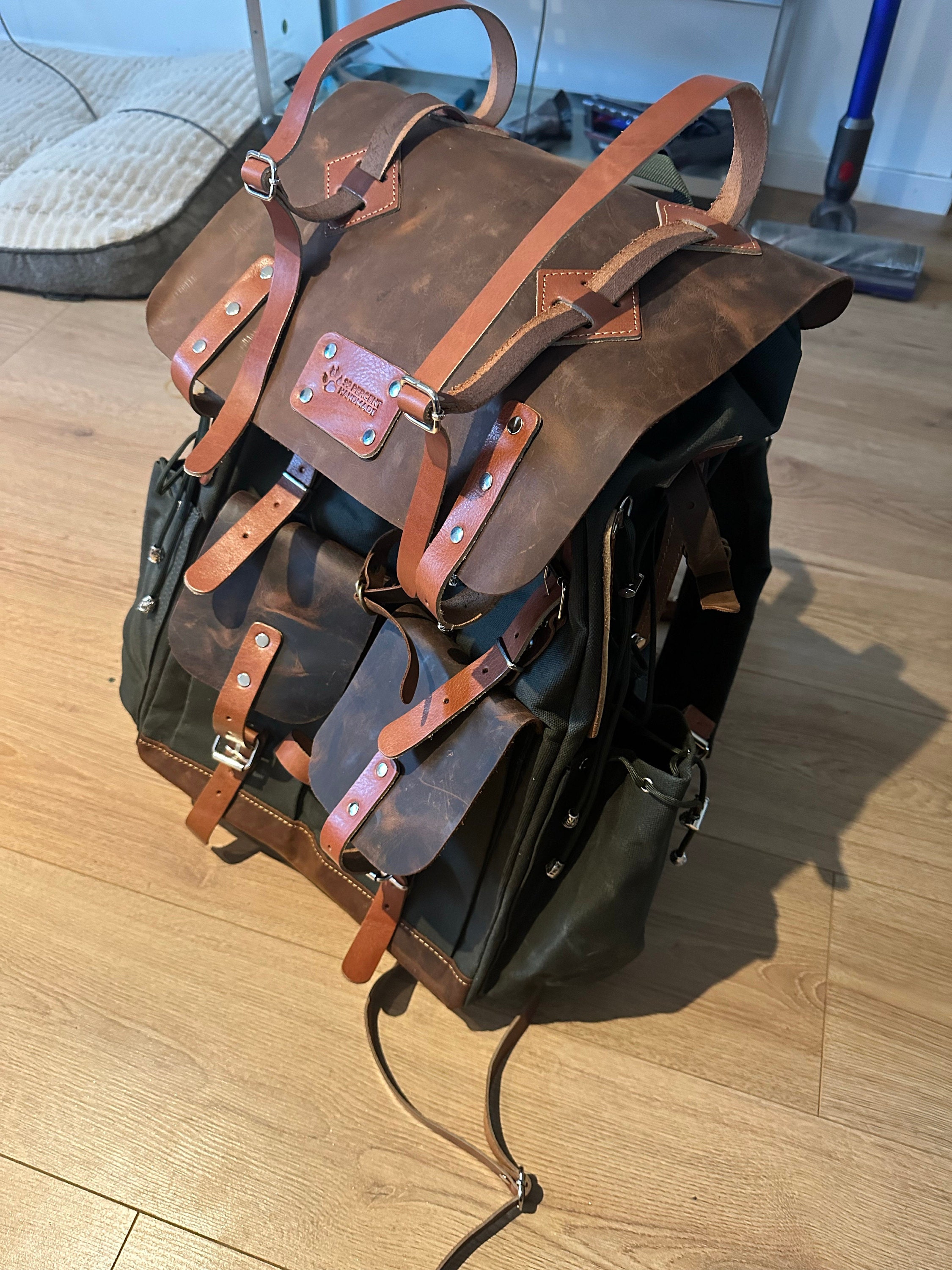 Tips: 50L | 6 Pieces Left | Green, Brown, Dhaki Colours | Handmade Leather, Waxed Canvas Backpack for Travel, Camping, Bushcraft | Personalization