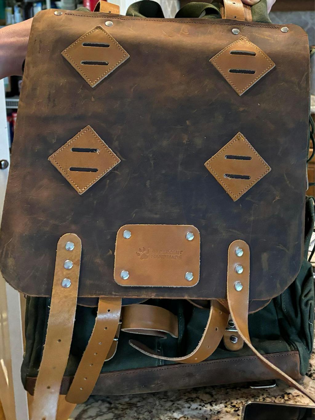 - Leather flap and bottom