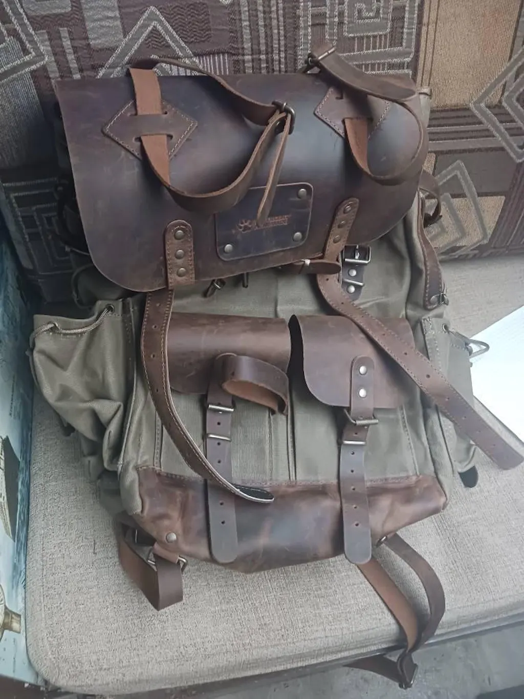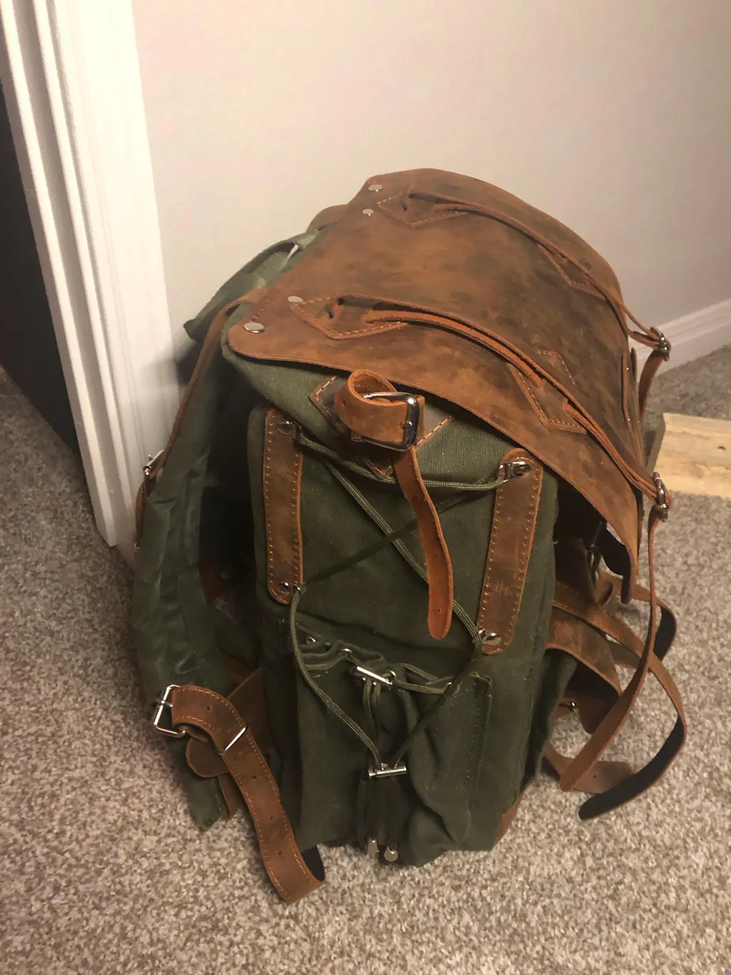 13)Bushcraft Handmade Wax Canvas Backpack | Leather Backpack | Travel | Camping | Fishing | Hunting | Bushcraft | 50Liters | Personalization